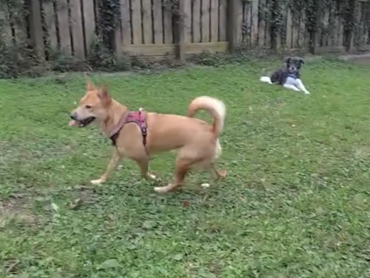 傾斜や樹木、そのままの土の地面なども広がり、犬達には魅力がいっぱいの広さ。