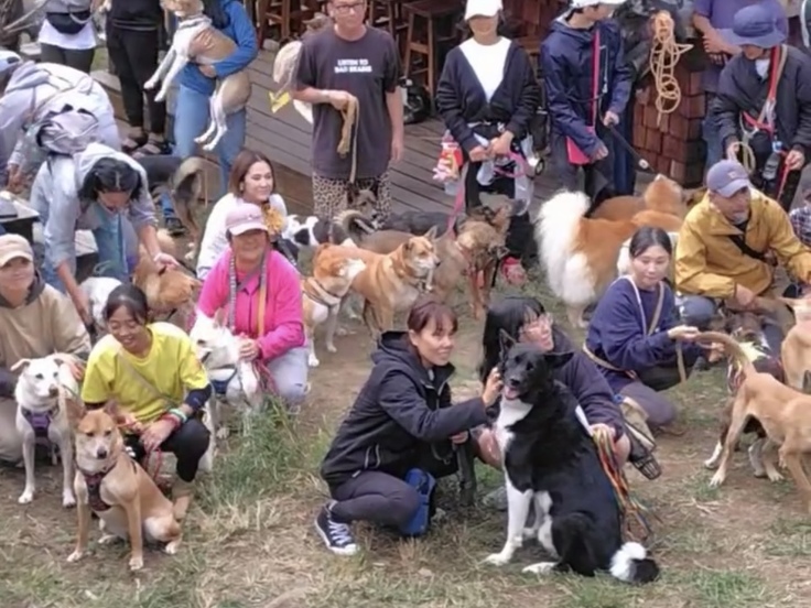 KDPさんは、テレビなどで取り上げられた際にご覧になった方もおられるかもしれませんが、大型の野犬などの保護にも力を入れていて、山間部の地形を生かした広い施設内に犬達の暮らすエリアや身体を動かして遊ぶエリア、ドッグランなどを持っておられます。今回は卒業生を含む一般の方と犬達にもドッグランを解放していただけ、食事や野菜の販売などもされるという、とても魅力的な企画でした。