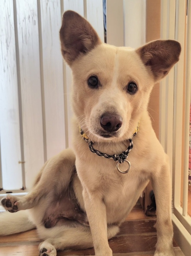 推定2021年5月生まれ。宮古島で首輪をつけた状態で放浪しているところを保護されました。名乗り出る飼い主は現れず、神奈川へ。人慣れしていて、すぐに落ち着いて暮らし始めました。初めはレーベンの中のたくさんの犬に緊張していたけれど、それも慣れ。