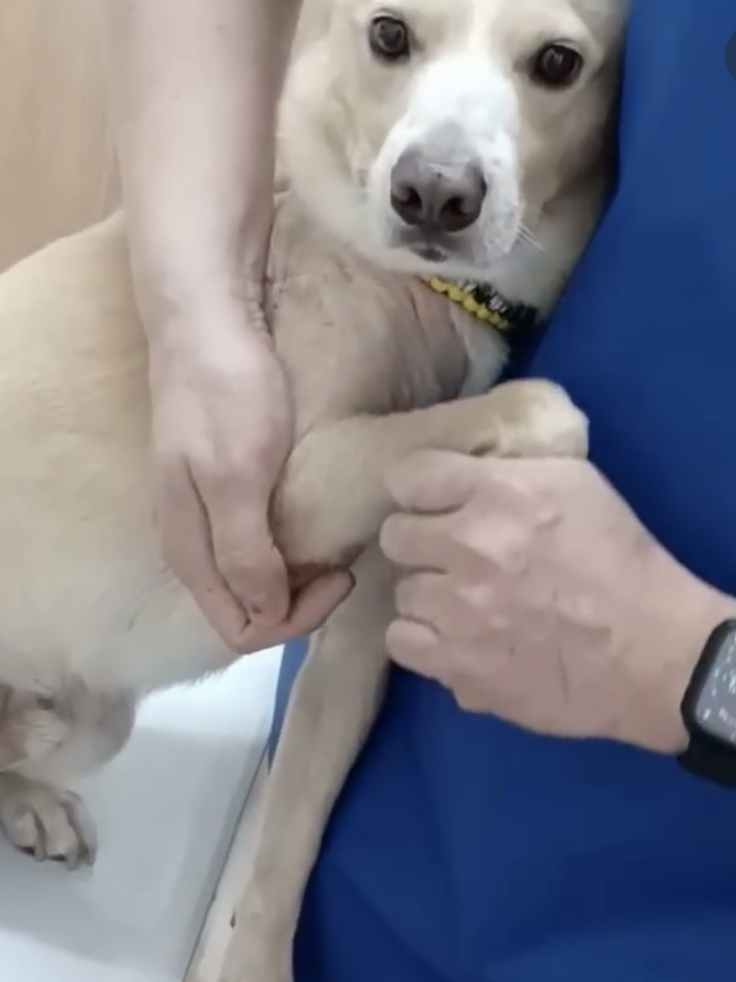 ただ、右の前足を地面につけずに歩き、角度も少し通常とは違う。何人かの獣医さんに相談し、出た診断は「肩の内方脱臼」。
