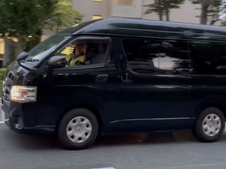 走り去るところで窓を開けて手を振るつもりが、開き方に不慣れで間に合いませんでした笑