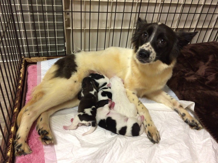 何回か通った頃、代表に同行し東京へ行きました。千葉で多頭飼育崩壊があり、病気や仔犬(母子)を優先して保護、その中の母子をレーベンが引き受けました。2~3日前に産まれたばかりの仔犬4匹と真っ黄色のパピヨン似のお母さん(輝愛咲)。輝愛咲は鳴きもせず緊張した面持ちで仔犬達を見守っていました。