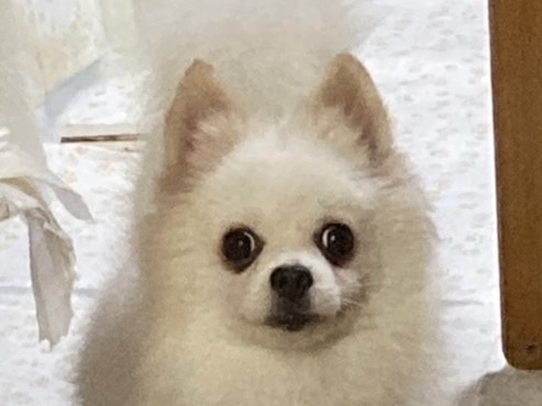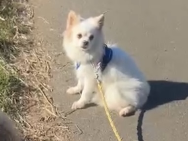 ポメラニアンの女の子、りんちゃん。6歳。目が大きい!初お散歩は、何それ?といった様子で日向ぼっこみたいでした。