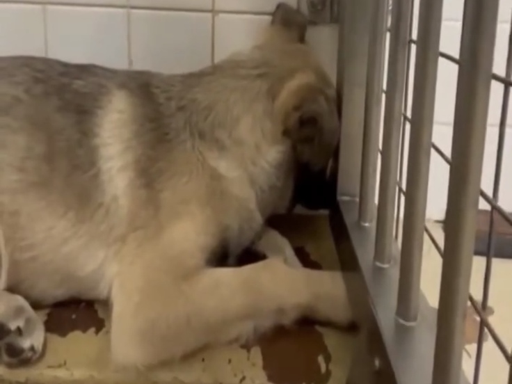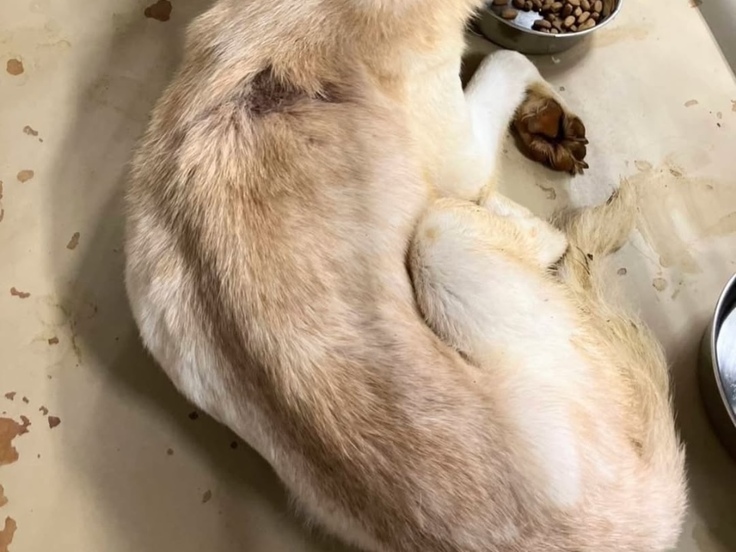 保健所収容時の様子。不安で怖いよね。収容期限が近づいたと連絡があり、迎えに行きました。推定5ヶ月の子犬。親や兄弟らしき犬は周囲にいなかったそうです。