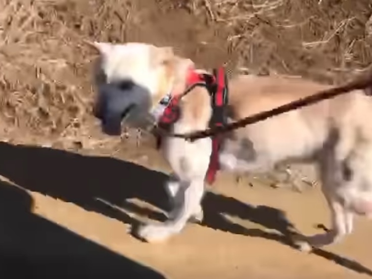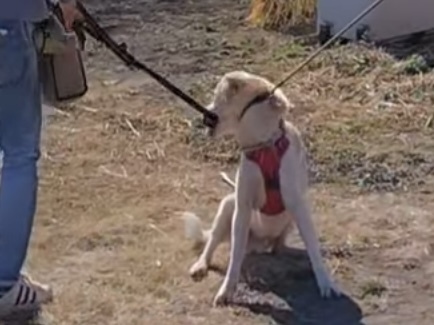 だんだんと楽しめる様子が出てきました。家の中で慣れてから外に出す、だけでは長期間外で運動する機会をもてずに経過してしまいます。代表の豊富な経験があっての、早い段階からの散歩の学習です。とても緊張する、犬の内面に向き合う場面です。