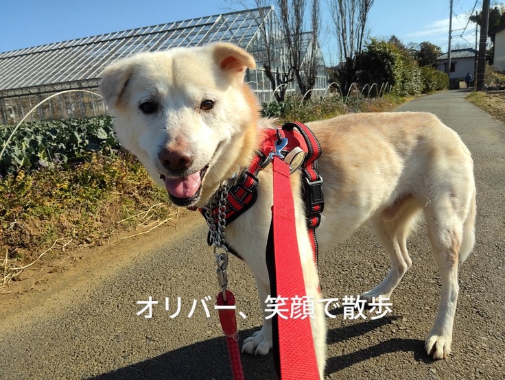 前回も紹介したオリバー。お散歩の時はだいぶ笑顔がみられるようになりました。😍