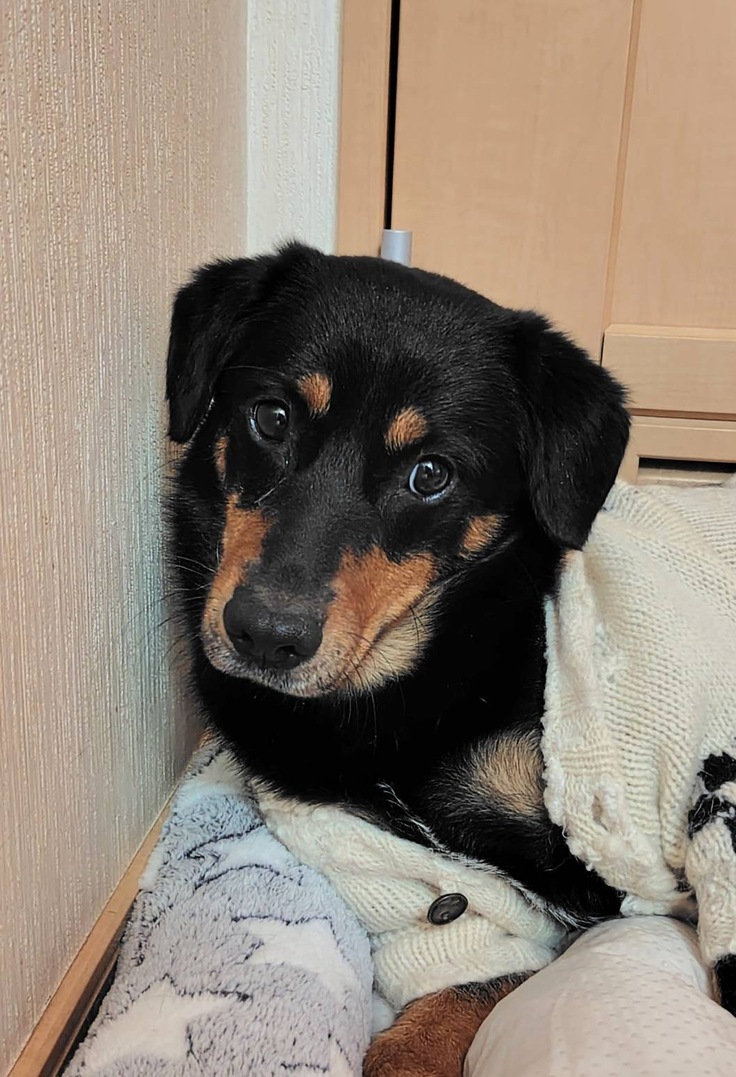 エール君、パンナより一回り大きいですが推定4ヶ月のパピーちゃんです😉