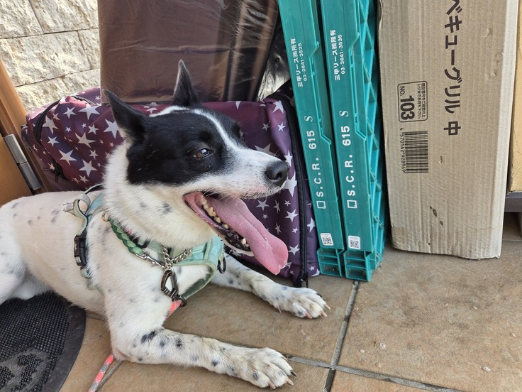 お散歩中、息が荒いな、口を大きく開けてるから暑いんだろうな、とは感じていました。日差しも出てきたので早く帰ろうね、と声をかけつつシェルターに戻りました。