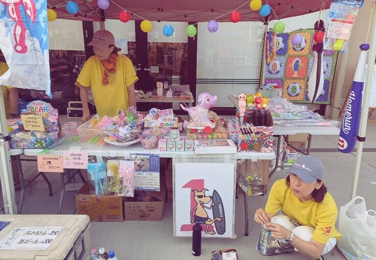 スタッフは設営、品出し、お客様の対応で大忙しでしたが、合間をぬって団体を知ってもらう説明をします。収益が犬のため、と知って募金箱に支援してくださる方も。