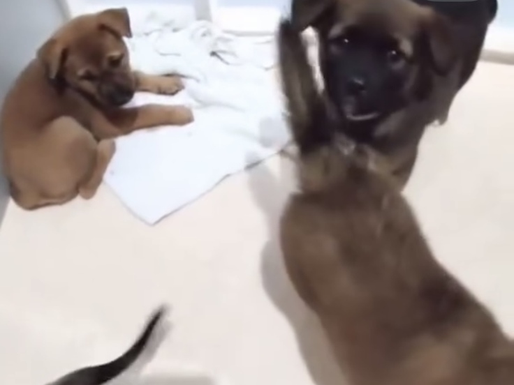 簡単にリラックスした表情は出せませんが、犬が犬を癒すかのように、今はワンプロレスを楽しんでいます。