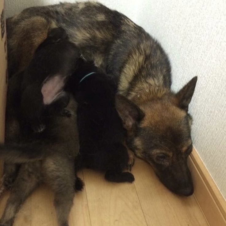 収容期限がつけられ、もう死ぬしかないという絶望の表情。新幹線や乗用車などをリレーして静岡まで来た時、7匹の赤ちゃんが車内で産まれました。レーベンの前身の団体で、古知屋代表が預かりボランティアとして今のレーベンハウスで迎え、仔犬達も家族と繋がっていきました。