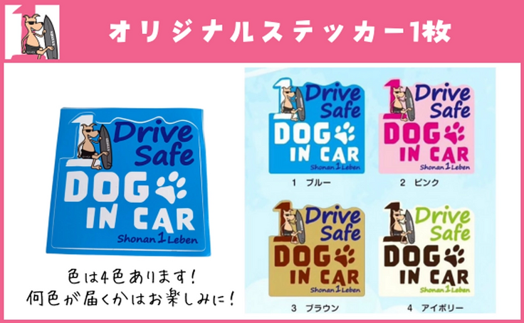 お家のワンちゃんと楽しいドライブ!この車には、かわいいワンコが乗ってますので、めちゃめちゃな運転はしませんよー、というステッカーです。お家のワンちゃんの顔を見ながら、レーベンにいる元野犬たちのこと、まだレスキューを待っているワンコのことを思い出していただけたら嬉しいです。