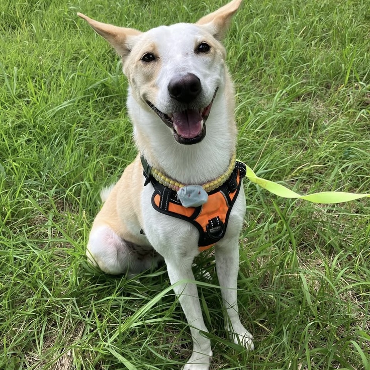 愛嬌のある顔立ちで元気いっぱい、ボランティアさん達に可愛がられている様子が印象的でした。成犬に近かったので大きさの見通しも立ちやすく、夫婦で話し合って「かんたにしよう!」と決めました。
