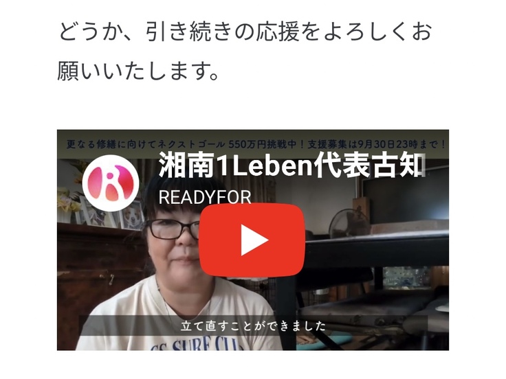 湘南1Leben代表、古知屋友里より動画でのご挨拶