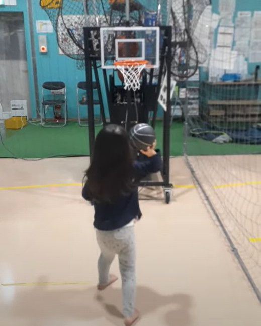 (写真は3歳になった娘。お客さんたちのバスケをまねして楽しんでいます)