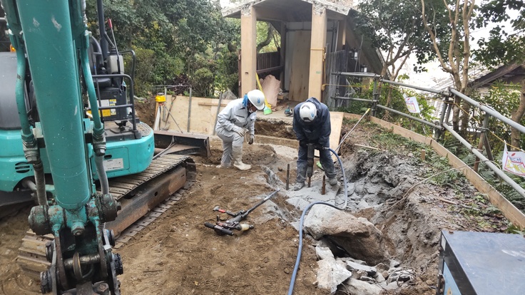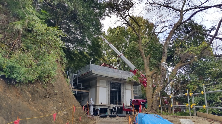 観音堂改修工事進捗のご報告|屋根と前室部分の土台の工事