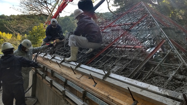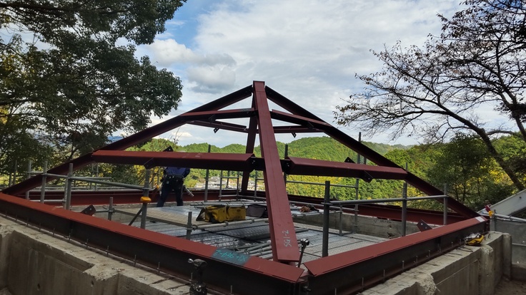 今回は更に進んだ屋根の工事と前室部分の土台作りについて、工事の進捗を皆様にお伝えします。