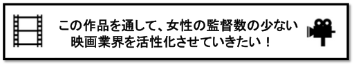 完成後は、あいち国際女性映画祭など、女性の活躍するフェスティバルにも積極的に応募します。まだ女性の監督数の少ない映画業界を活性化させていきたいと思っております。