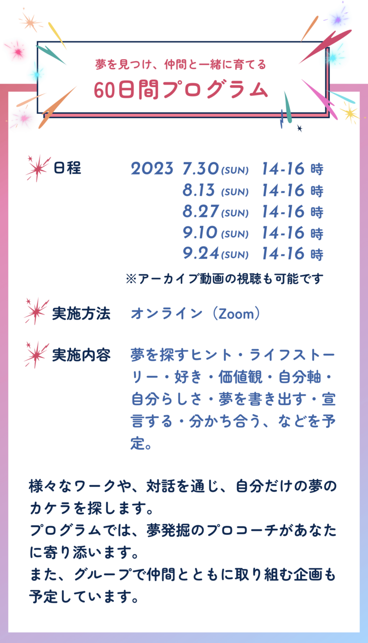 ●夢を見つけ、仲間と一緒に育てる60日間プログラム 受講権