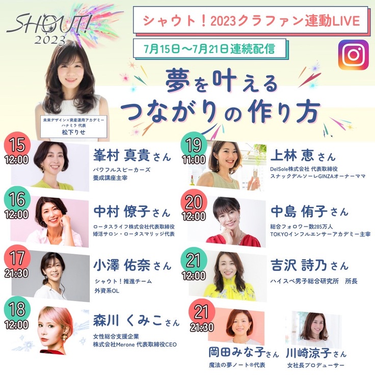 本日から松下りせのInstagramにてカウントダウンライブ配信を開始します!夢を叶える輪を広げるために、推進チームや協力チームのメンバーをお招きして、さらに盛り上げていきたいと思います!