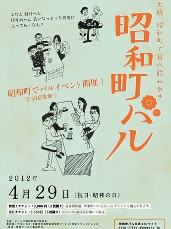 これは、寺西家阿倍野長屋前と桃ケ池公園、阪南中公園でやっているイベントに対して、地域のお店が少し疎外感を持っていたのが気がかりで、解決するために多くのお店かが参加出来る形を模索した結果、周辺の50店舗ほどが参加するバルイベントという形になりました。これは、様々なお店に関わってもらうきっかけとしては大成功でした。