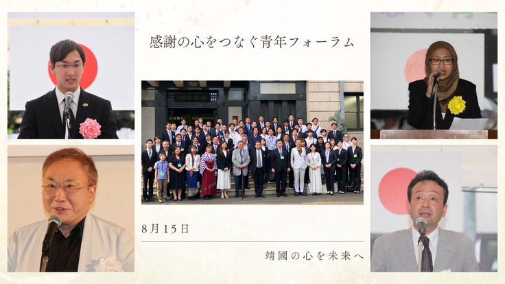 靖國神社からもご許可をいただき、また有志の方々からご寄付をいただき、以来毎年8月15日に「靖國の心を未来へ感謝の心をつなぐ青年フォーラム」を開催してきました。