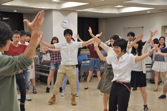 説明終了後には、歌とダンスの公開レッスンが行われて、実際にレッスンを体験しました。初めてレッスンに参加した人も、とても楽しそうに歌い、踊っている姿が印象的でした。