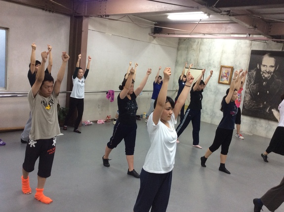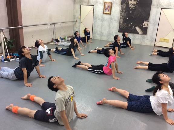 いつものように全身をほぐすストレッチから始まり、基礎のステップ、振付指導へ。