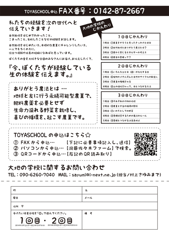 (条件など詳しくは 第2回大地の学校申し込みhttp://goo.gl/wuwllsからご覧ください)