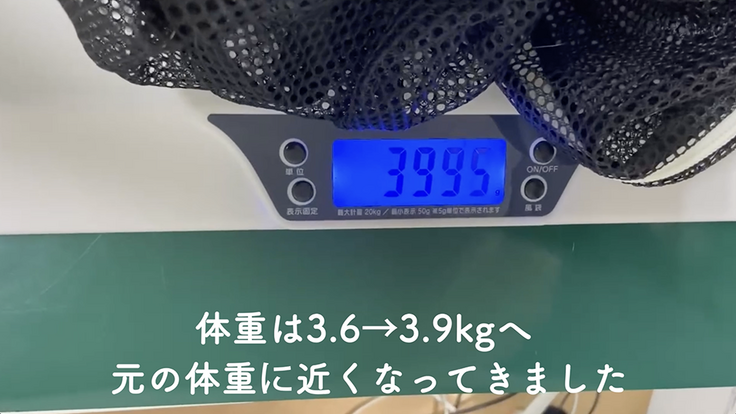 体重は前回の3.6→3.9kgに増え、発症前の4kgに近づいてきました!