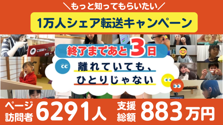 引き続き、SNSでの拡散やお知り合いの方への声かけをしていただき、一緒に支援の輪を広げていただけますと幸いです。
