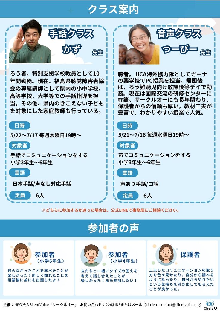 🧏♀️手話クラスと🗣️音声クラスの2クラスをご用意しています。