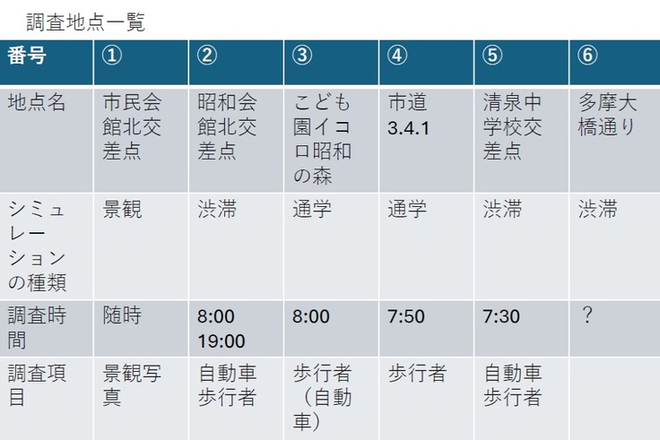 現在概ね上記6か所の地点で交通量調査を行っています。 ご近所にお住まいの方で、調査にご協力いただける方、参加のご検討をよろしくお願いいたします。