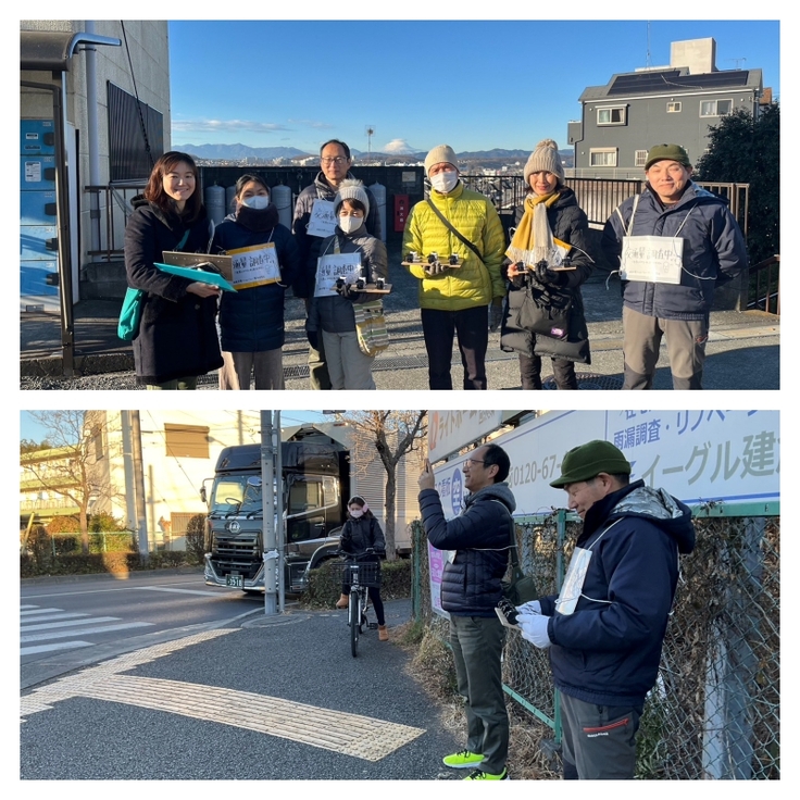和田橋交差点での交通量調査の様子です。 この日は、PTA、自治会、教育委員会、学校評議員各関係者の方々のご協力をいただきました。ありがとうございました。 真っ青な青空に富士山の傘雲がとても奇麗でした。