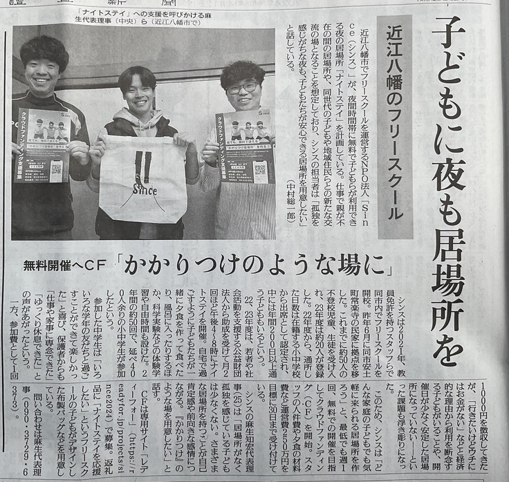 メディア掲載(3)“子どもに子どもに夜も居場所を”(読売新聞)