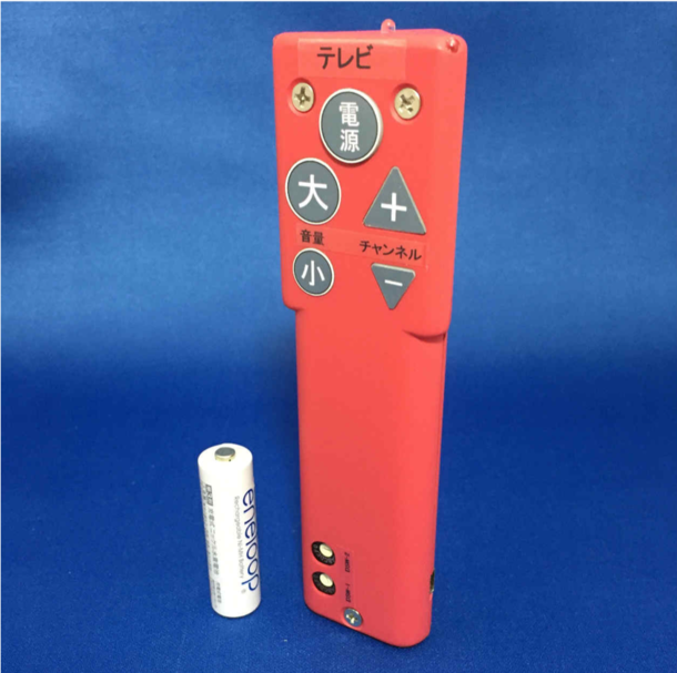 このリモコンは、電源のON/OFF、チャンネルのアップ/ダウン機能、音量の大/小の5つのボタンだけで、高齢者が操作を誤りにくい商品となっています。 また、既存のテレビのリモコンのボタンを、とても簡単に製品に学習させることができるので、我々職員が悩むこと無くリモコンの設定をお手伝いすることが出来ます。