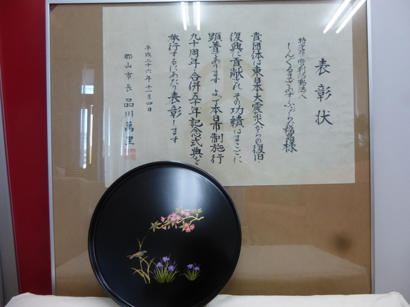 表彰状と、綺麗な絵柄のお盆も届きました。