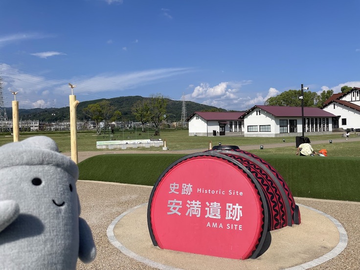 そんな一昨日、10月7日に当館のYouTubeのライブ配信で使用する動画撮影のため、大阪府高槻市にある「安満(あま)遺跡公園」に行ってきました。