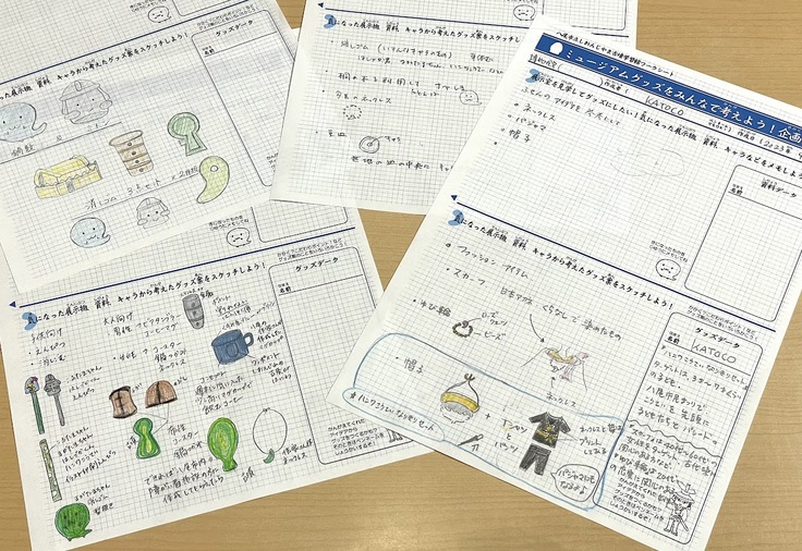 昼食後は、付箋のアイデアを元に、それぞれ新しくグッズ案を考えてもらいました。そして、そのアイデアは、今回新たに作成したミュージアムグッズ企画用のワークシートに書き込んでもらいました。