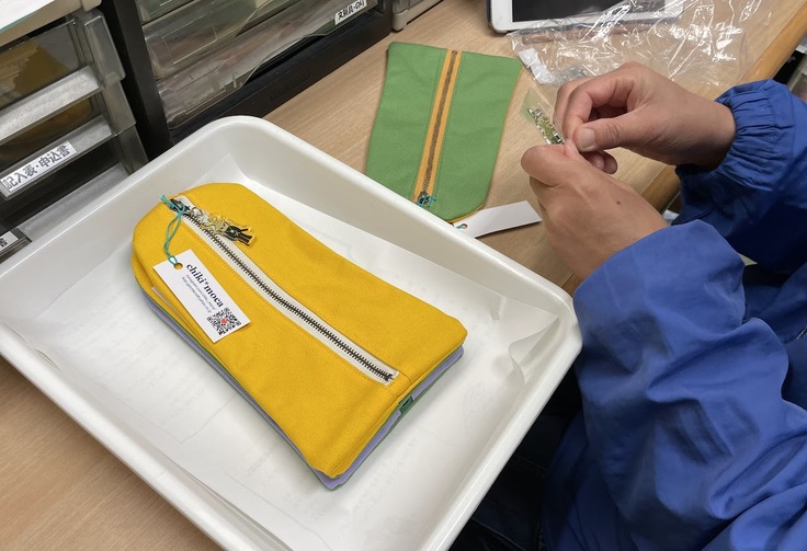 (心合寺山ペンケースにハニワこうていキーホルダーを付けている様子)