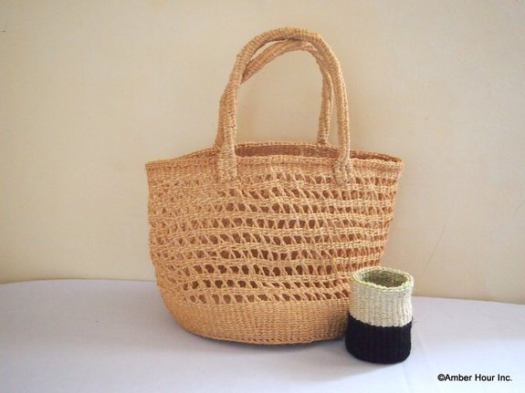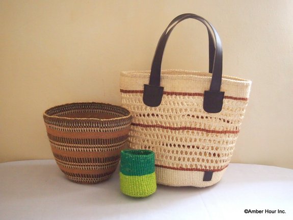 私たちが活動する地域は、首都ナイロビから南東約65km離れたマチャコスという街です。手工芸品が盛んな地域で、サイザル麻と呼ばれる植物を素材としたバスケットや木彫り製品、ウールやビーズを用いたバッグなど様々な民芸品があります。写真に載っているサイザルバッグは、農村部の多くの女性グループにより作られています。マチャコスは、降雨量が少なくあまり農業に向かない半乾燥地域であるため、乾燥に強い植物であるサイザル麻は大事な収入源として利用されてきました。