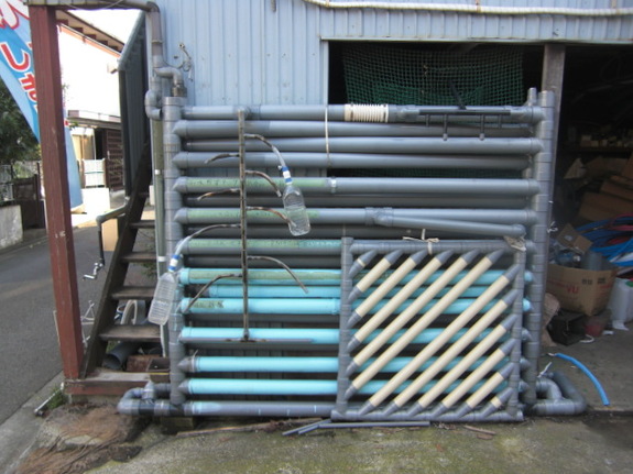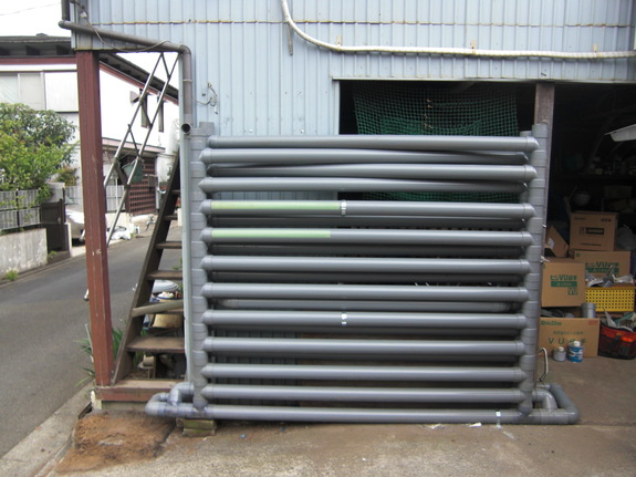 塩ビ管を組み上げれば省スペースな雨水タンクができると信じて。