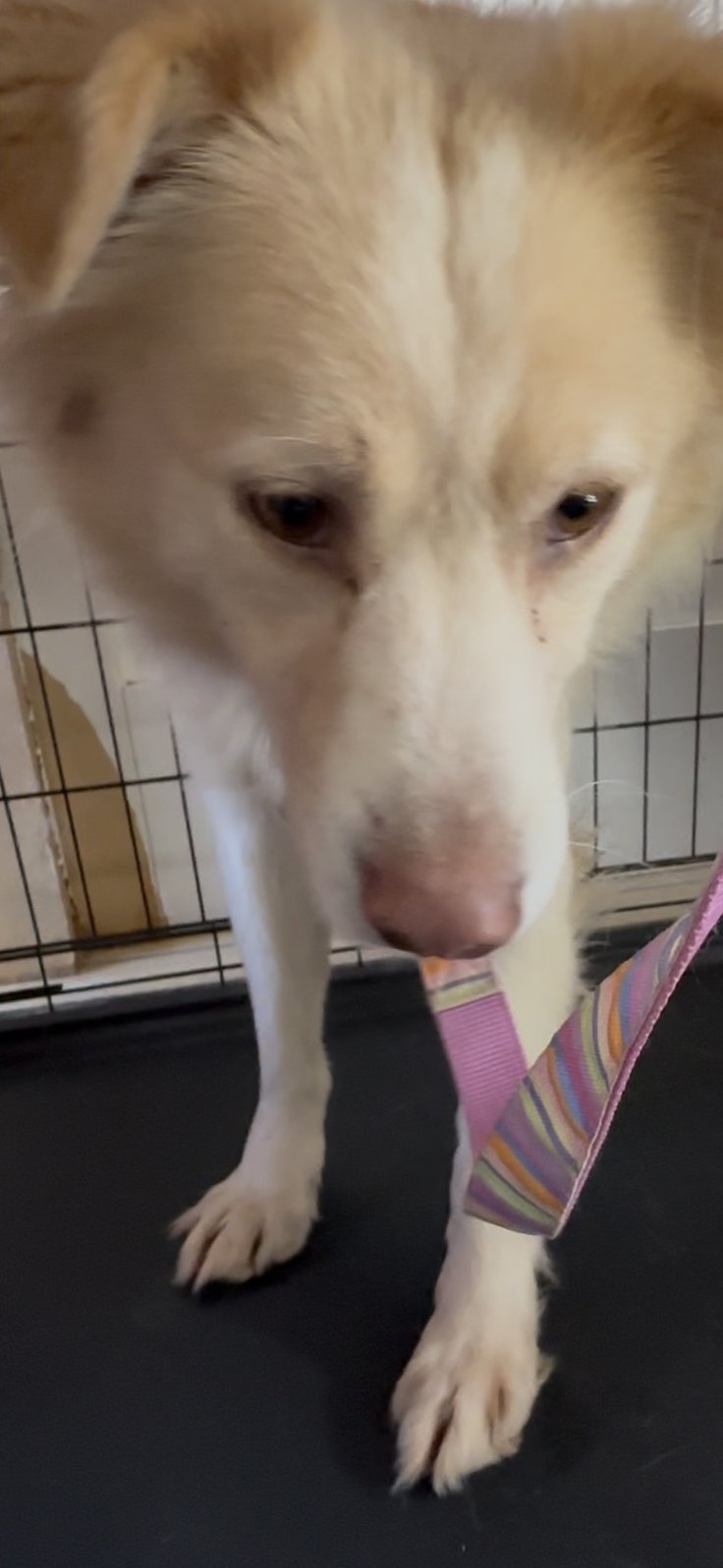 シャンプーしてきれいになったら家庭犬への道へ修行を始めます。