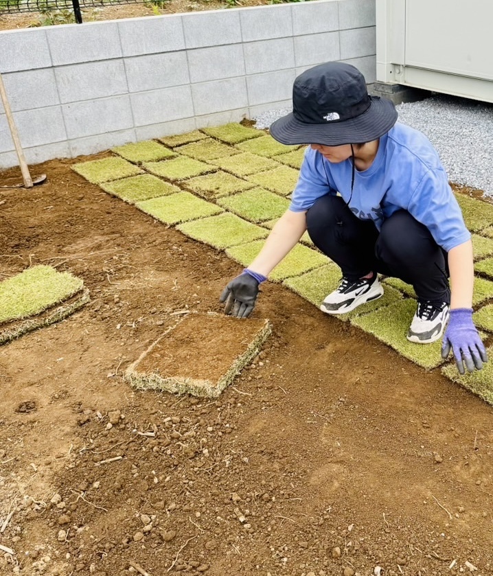 酷暑のため遅れていた芝生貼りがやっと!!!