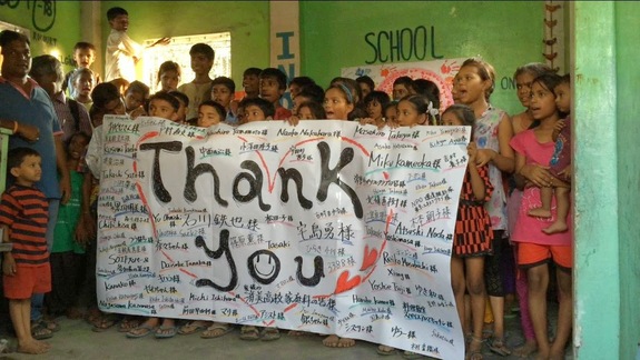 子どもたちからの感謝の声を動画にしてメールでお届けします。購入者のお名前を書いたプレートを持って、「日本の○○さま、ありがとうございまーす!!」と元気な声で大合唱です。