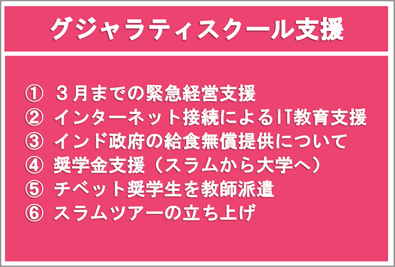 3月5日より15日まで春のスタディツアーでインドを訪問して来ました。今回は総勢7名の参加で、支援先のグジャラティスクール(デリー・スラム)やチベット奨学生(大学生、ダラムサラ・デリー)を訪れて参りました。ダラムサラでは中央チベット政権(CTA)の教育省にて、定例の教育大臣や奨学金担当とのミーティングおよび学校訪問も行いました。