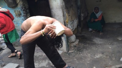 地下鉄カーティ・ナガー駅からも近い、スラムの入口付近で、サージャンたちの到着を待つ。