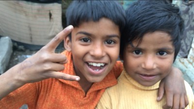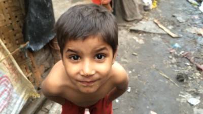 明らかに不衛生なスラムの現実を目の前にして、それでも楽しそうにはしゃぐ子供たちの姿。