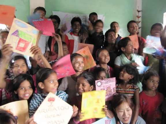 「ナマステー!私たちは日本という国からやってきました!日本はここにあります。」
