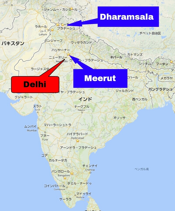 まずは、メーラトの場所ですが、首都デリーの北東約60キロメートルに位置します。